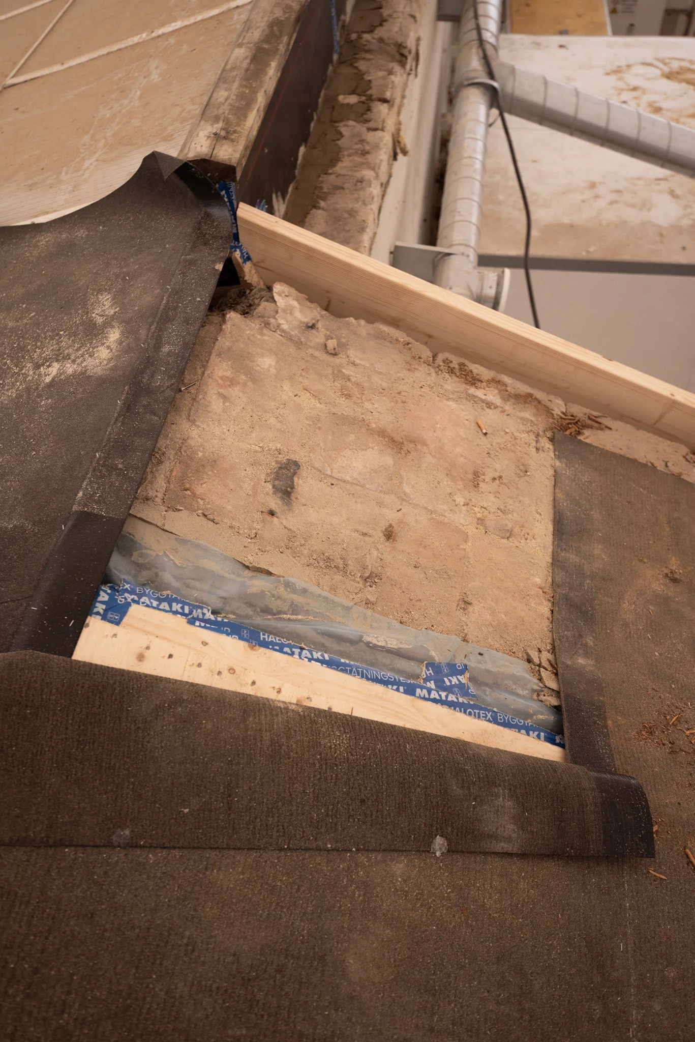 Så blev det inte riktigt. När vi tog bort teglet upptäckte vi nämligen mögel.