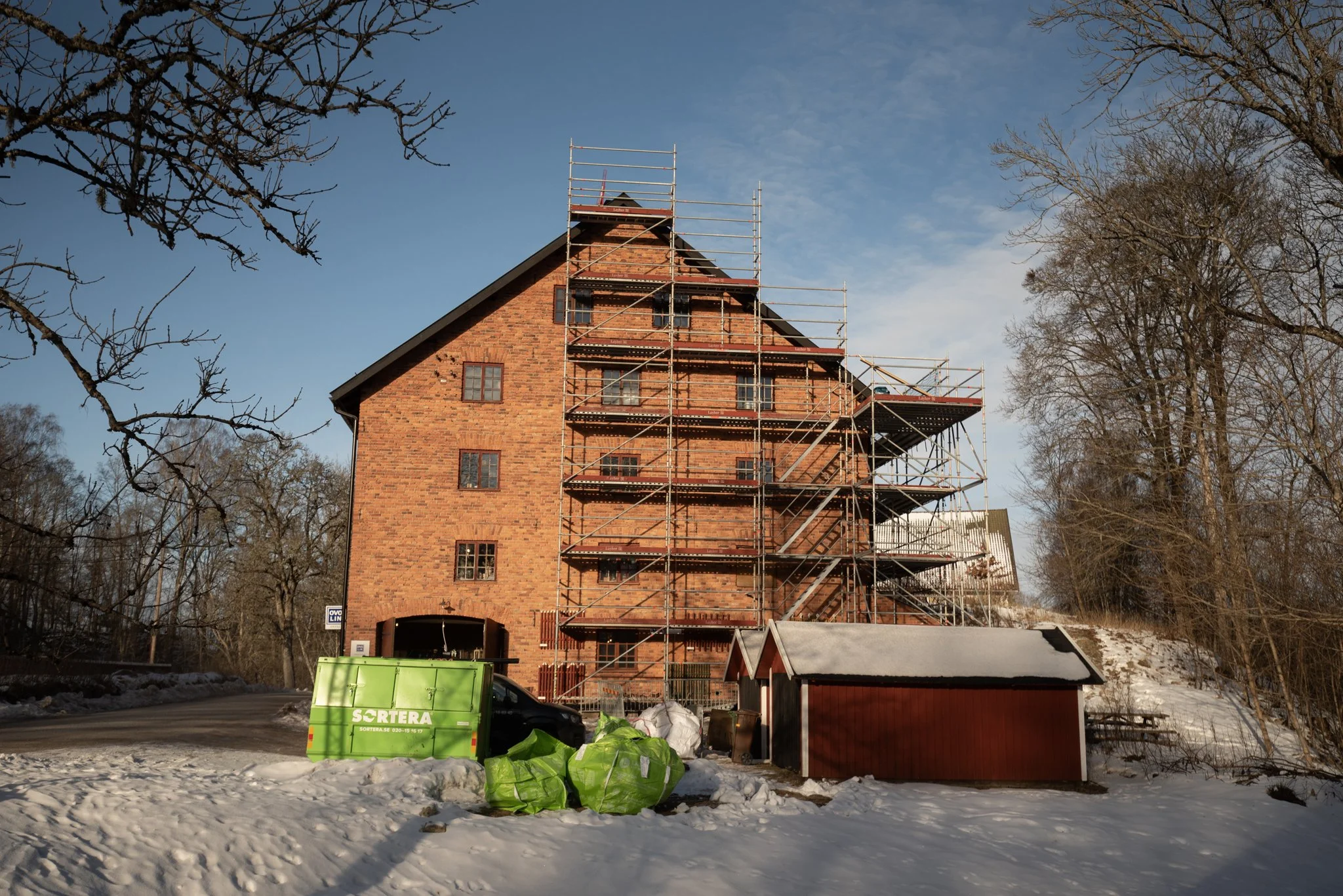 Sedan förra våren har vi arbetat med att renovera invändigt i Tegelmagasinet i Karlslund utanför Örebro. Nu har vi påbörjat nästa projekt i samma byggnad: renovering av yttertaket.